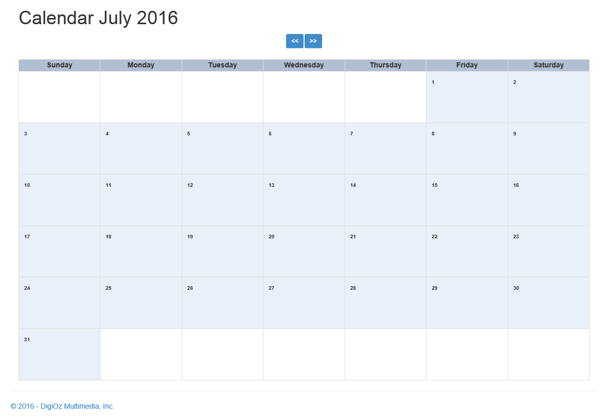 DigiOz MVC Calendar is a simple monthly Calendar system coded purely in ASP.NET MVC. You can easily copy a single view file and it's corresponding controller action into your own project to instantly create a calendar in your own project!