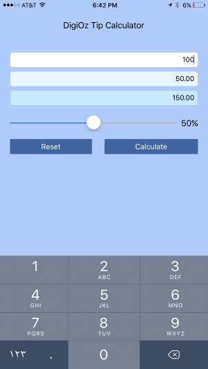 The DigiOz Tip Calculator is an application that allows you to quickly calculate how much you need to tip a waiter for a specified percentage (usually 15% unless you are cheap!). This program was written in XCode using Swift 3 and supports iOS version 10.2 or higher.